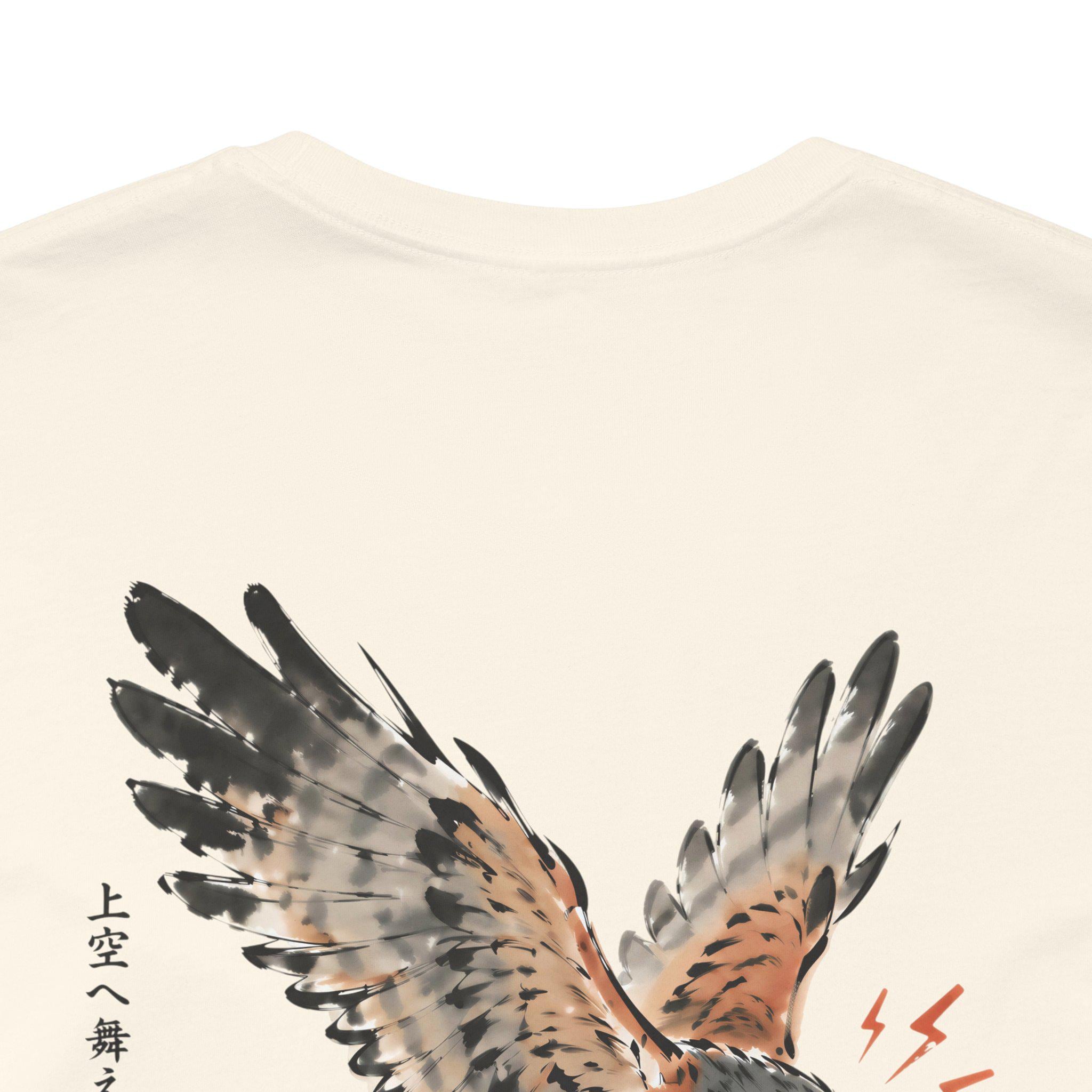 This lightweight jersey tee brings nature and quiet strength together. The back features a painterly hawk in mid-dive—brushlike strokes, soft earth tones, and a hint of hand-drawn script beside the image. It feels like a breath of wind on a trail at dawn: calm, attentive, and quietly bold. Wear it on slow mornings with coffee or layered under a flannel for evenings around the fire. The crewneck and retail fit keep the silhouette clean so the artwork remains the focus, while the soft Airlume cotton makes it comfortable for long days outdoors or relaxed city life.